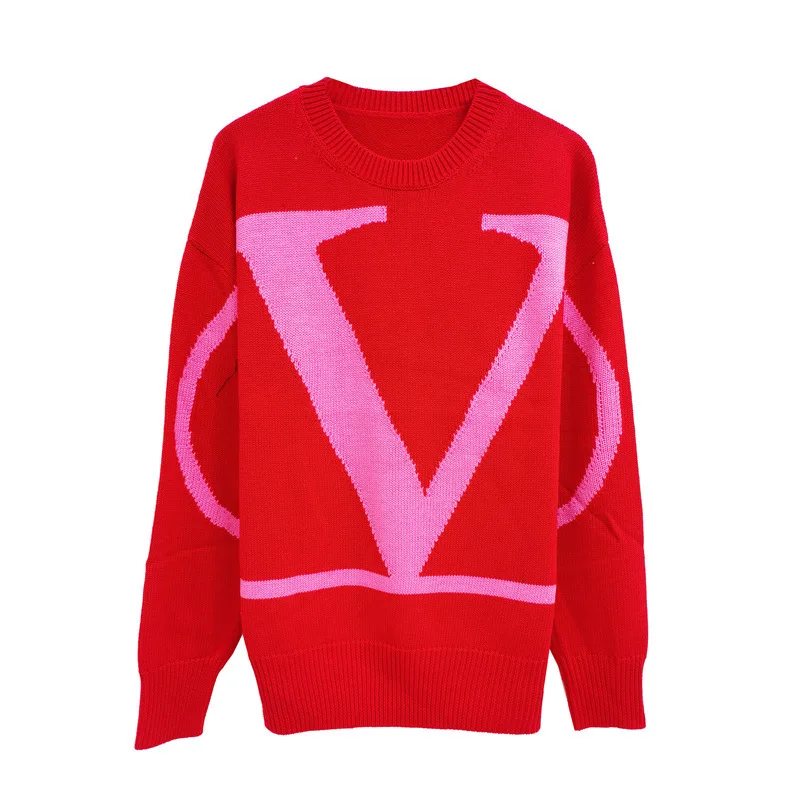 2025 New Women’s Oversized Letter Embroidery Sweater, Round Neck Long Sleeve Knit Pullover, Casual Loose Fit Top – 200000345