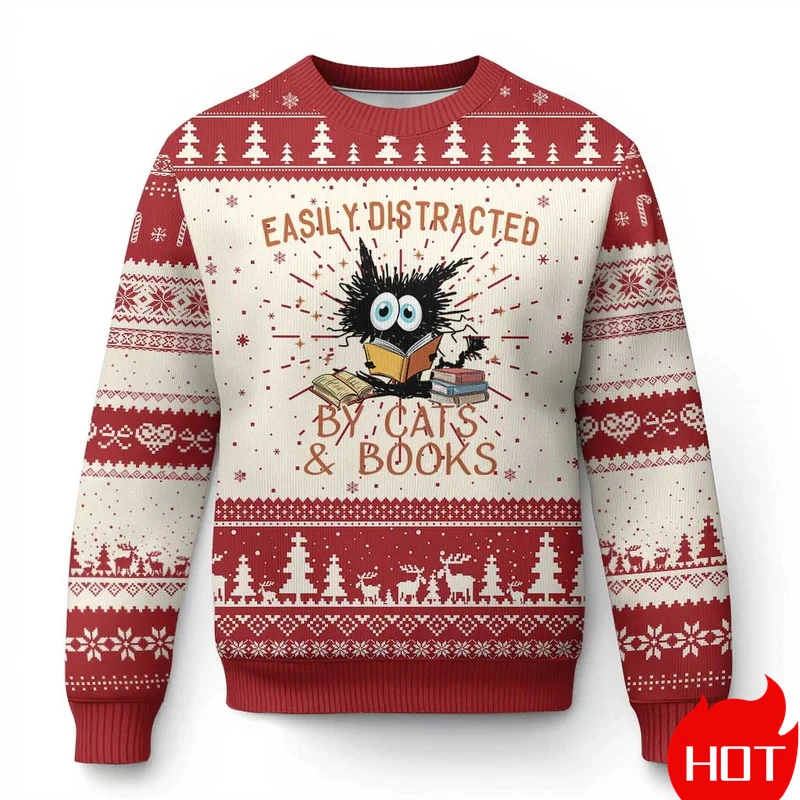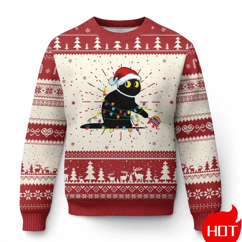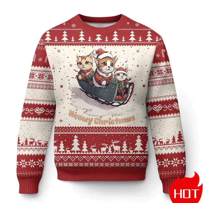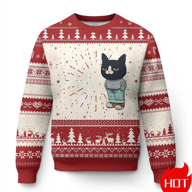 Funny Animal Cute Cat Graphic Ugly Christmas Sweater Fashion Pet Cat Dog Sweatshirts For Women Clothes Xmas Boy Gift Pullovers – 200000343