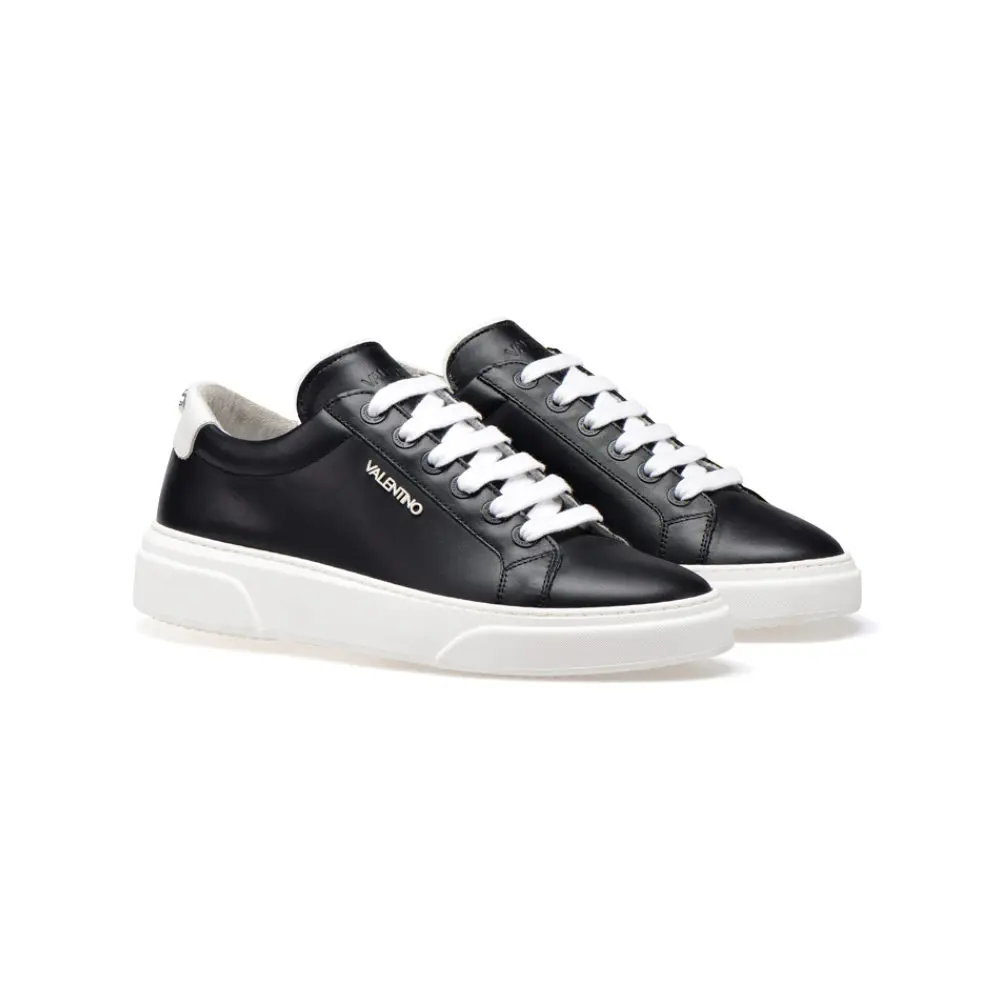 Original Valentino Shoes Fresh and Casual Street Style Lace-up Man Sneakers in Black and White Calf for Fashion Victims